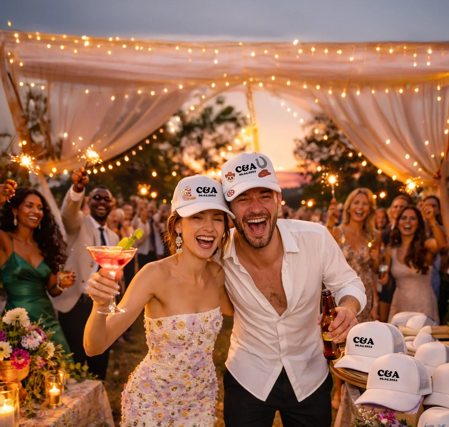 The Print Shop brings a premium on‑site Wedding Merch Bar to your celebration. Guests design custom hats and shirts live at your wedding and leave with a one‑of‑a‑kind keepsake made just for them.